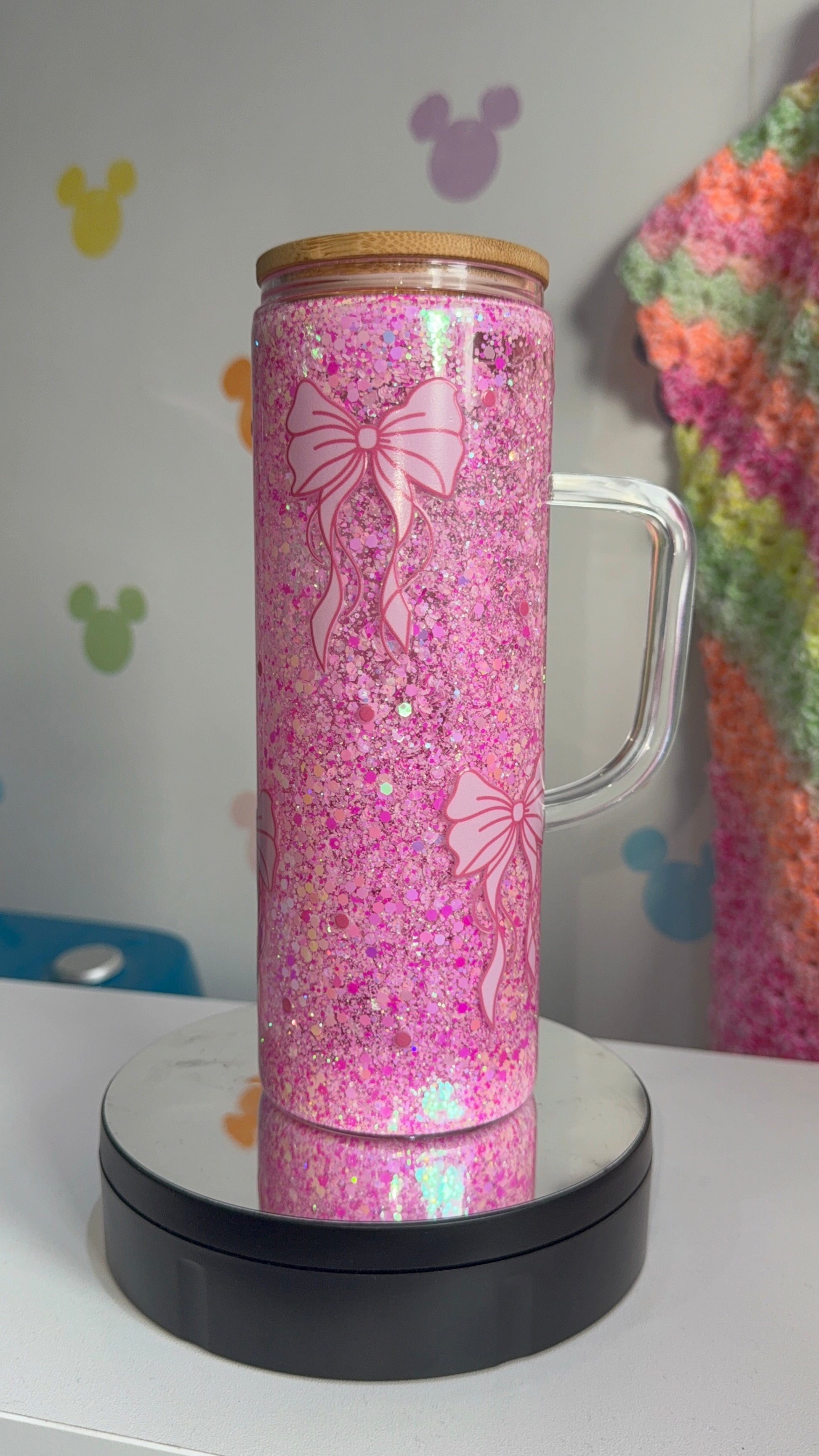 * 20oz glass handle - glass with glass handle, comes with bamboo lid & acrylic straw.